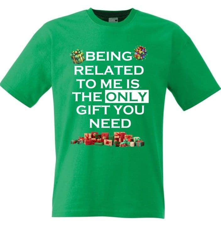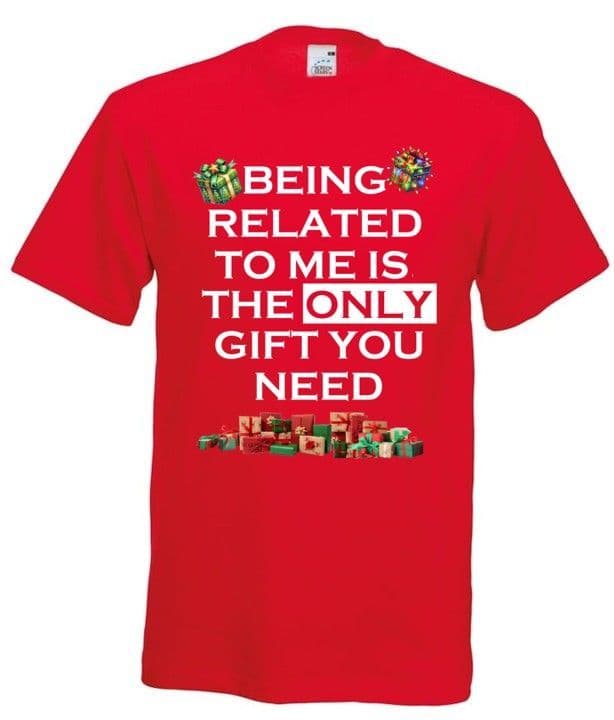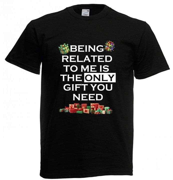 Choose the tshirt colour and size. The tshirt has being related to me is the only gift you need on it