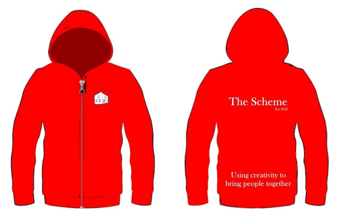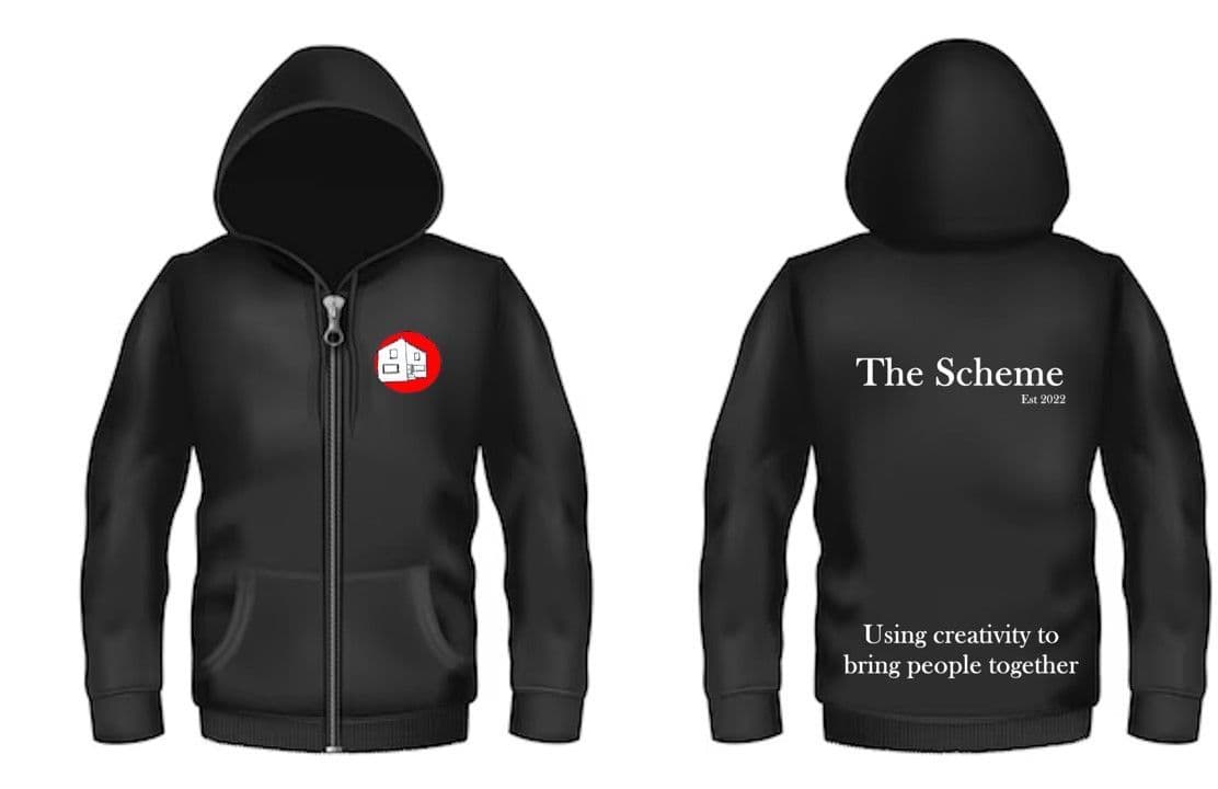 Zipper in a choice of colours with the scheme logo embroidered on the front and wording printed on the back